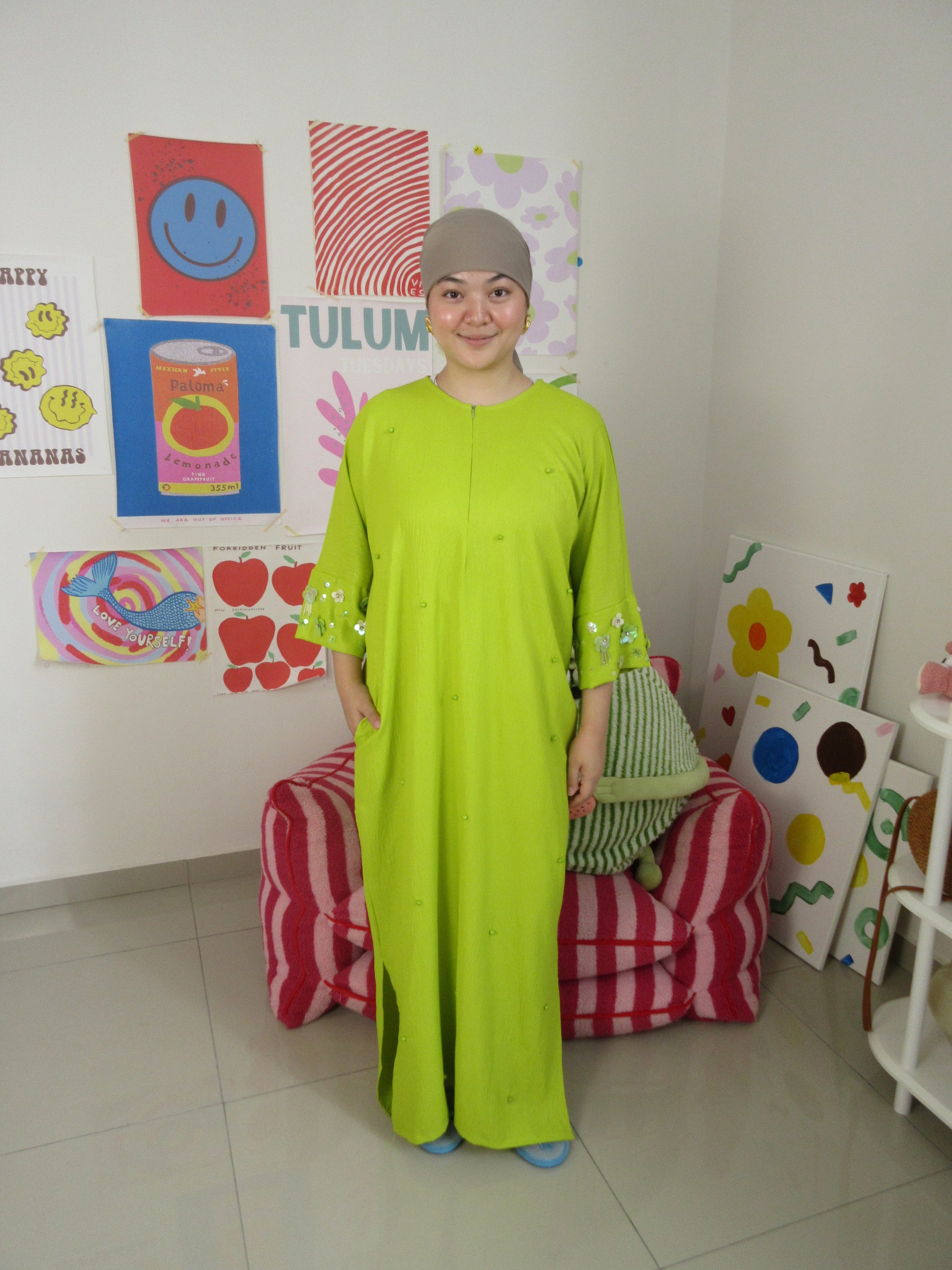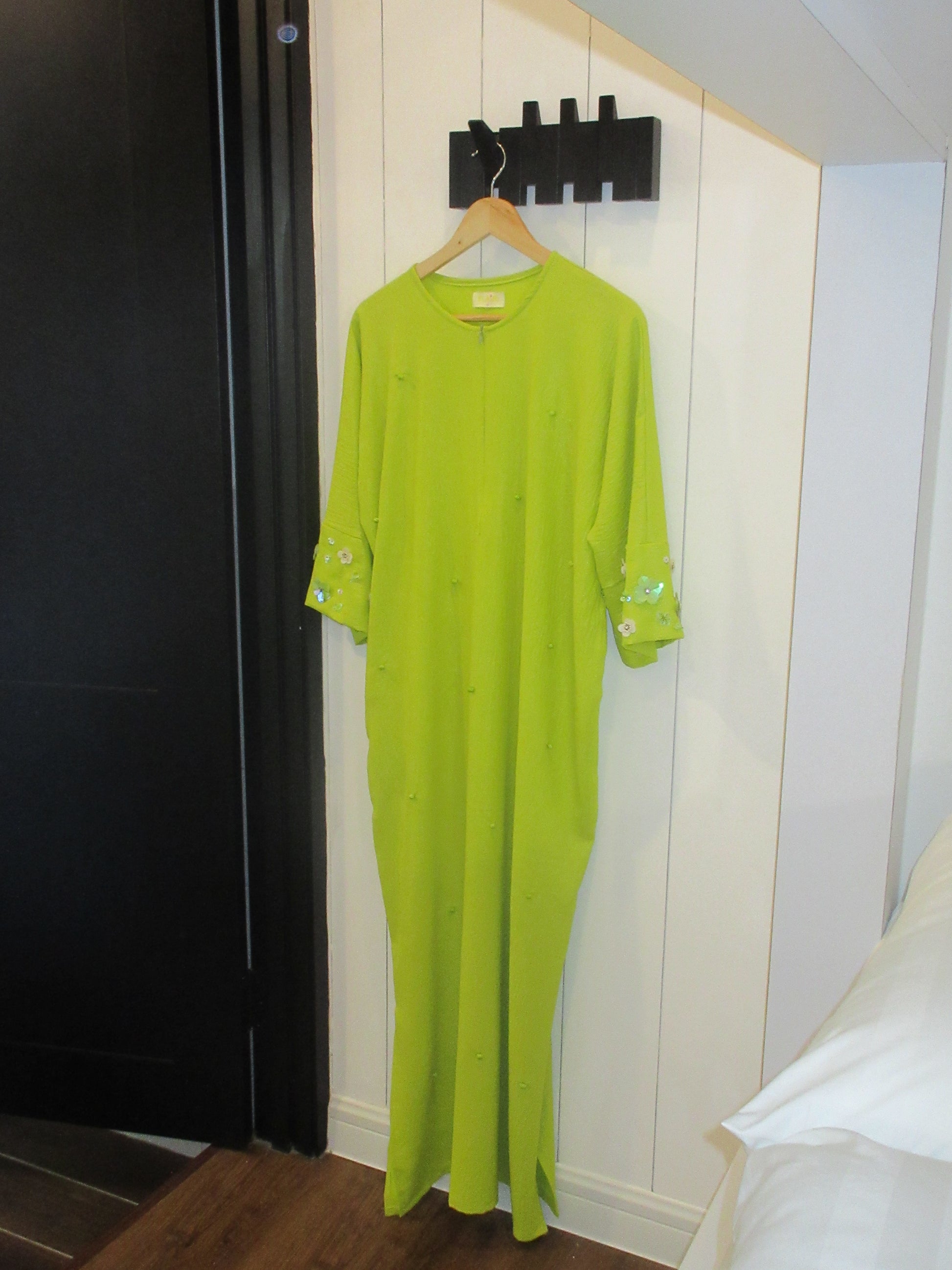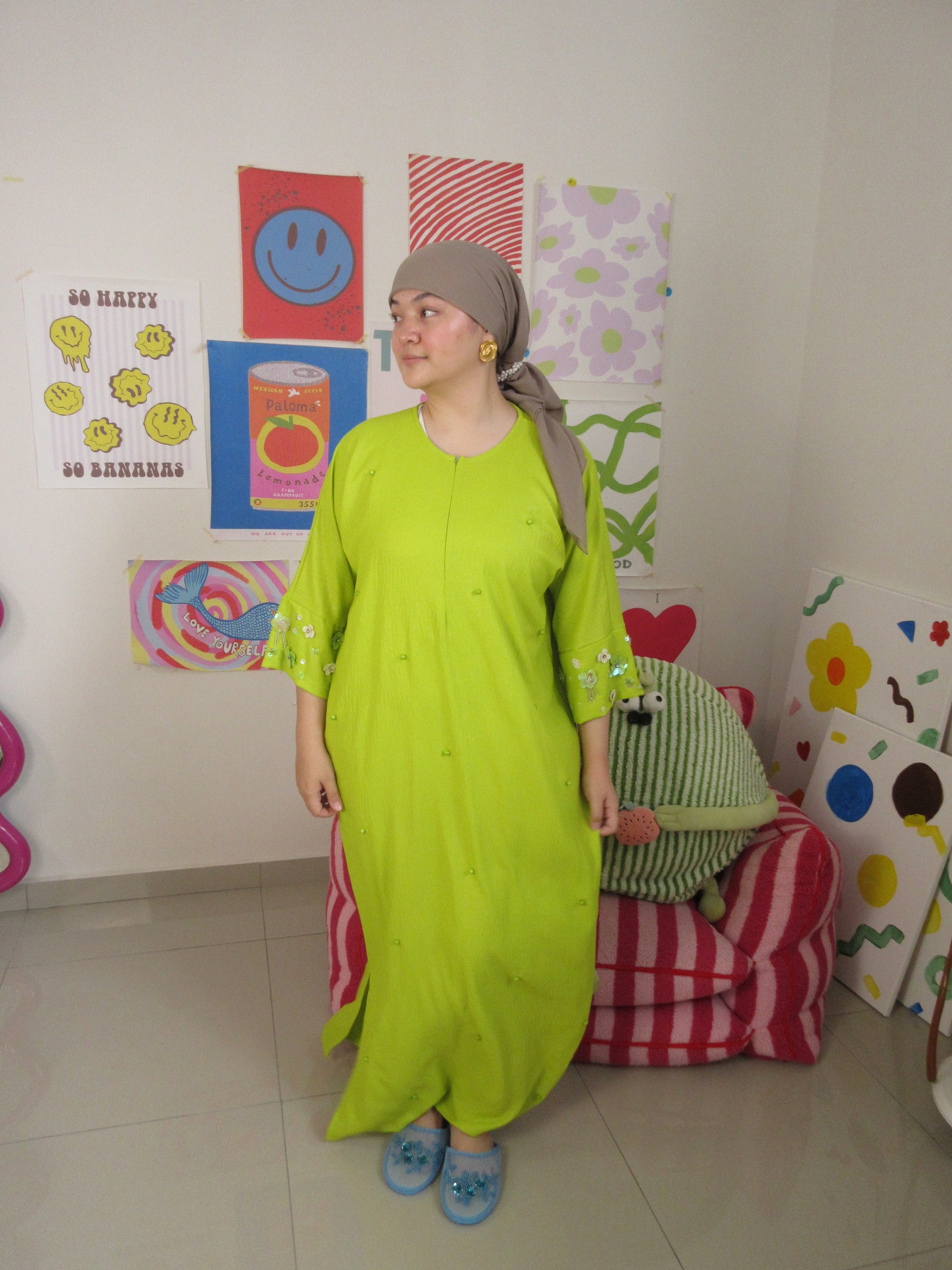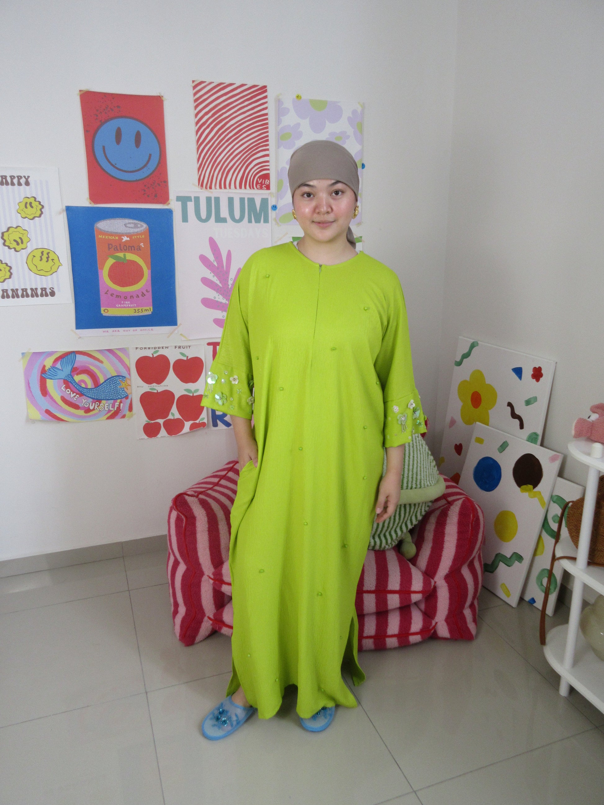 A love letter to flower fields and sun-drenched afternoons, The All-Dayer is the kind of dress you wear when you want to feel soft and powerful. Crafted from ethereal Cypress Shimmer fabric, it catches the light with every step — like a daydream in motion. With dramatic batwing sleeves, delicate 3D floral embellishments, and hand-sewn sequins and beads, this maxi is a walking garden party. Scattered pearls stitched across the body add a dewy, enchanted touch. Designed to make you bloom from day to dusk.