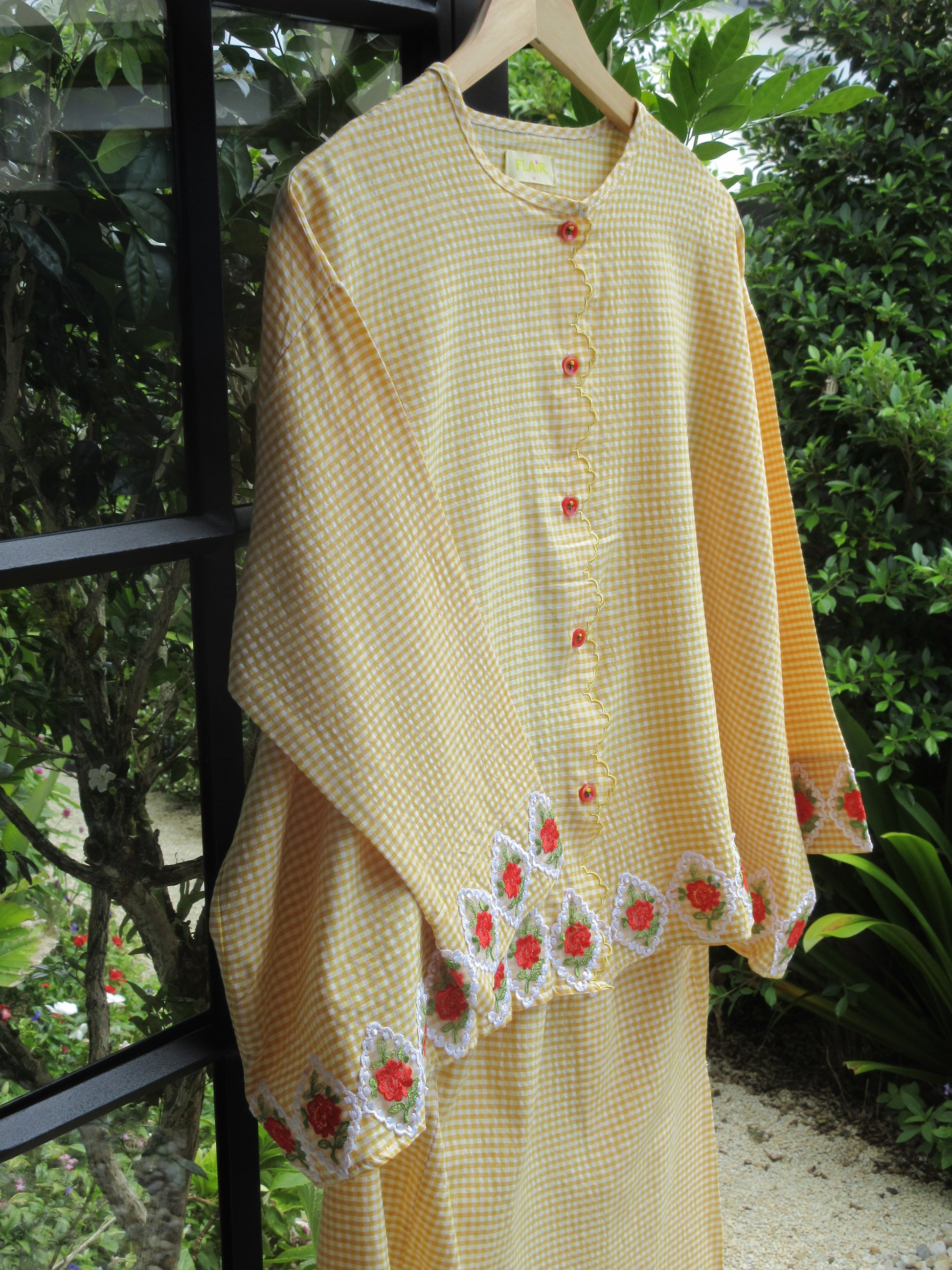 For the ones who want it all β The All-Rounder is your no-brainer duo for everyday flair. The oversized button-down top features embroidered buttons, a stripe of sulam along the placket, and delicate lace trimming on the hem and sleeves. Paired with a matching full-elastic skirt designed with a unique front overlap (no slit, no stress), finished with lace detailing. Made for twirling through flower markets, cafΓ© hopping, or layering over just about anything. Comfortable, playful, and endlessly re-wearable.
