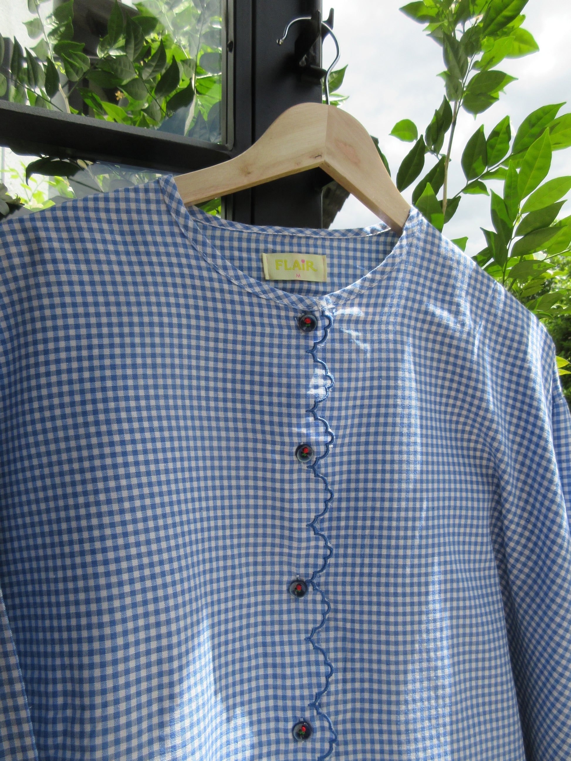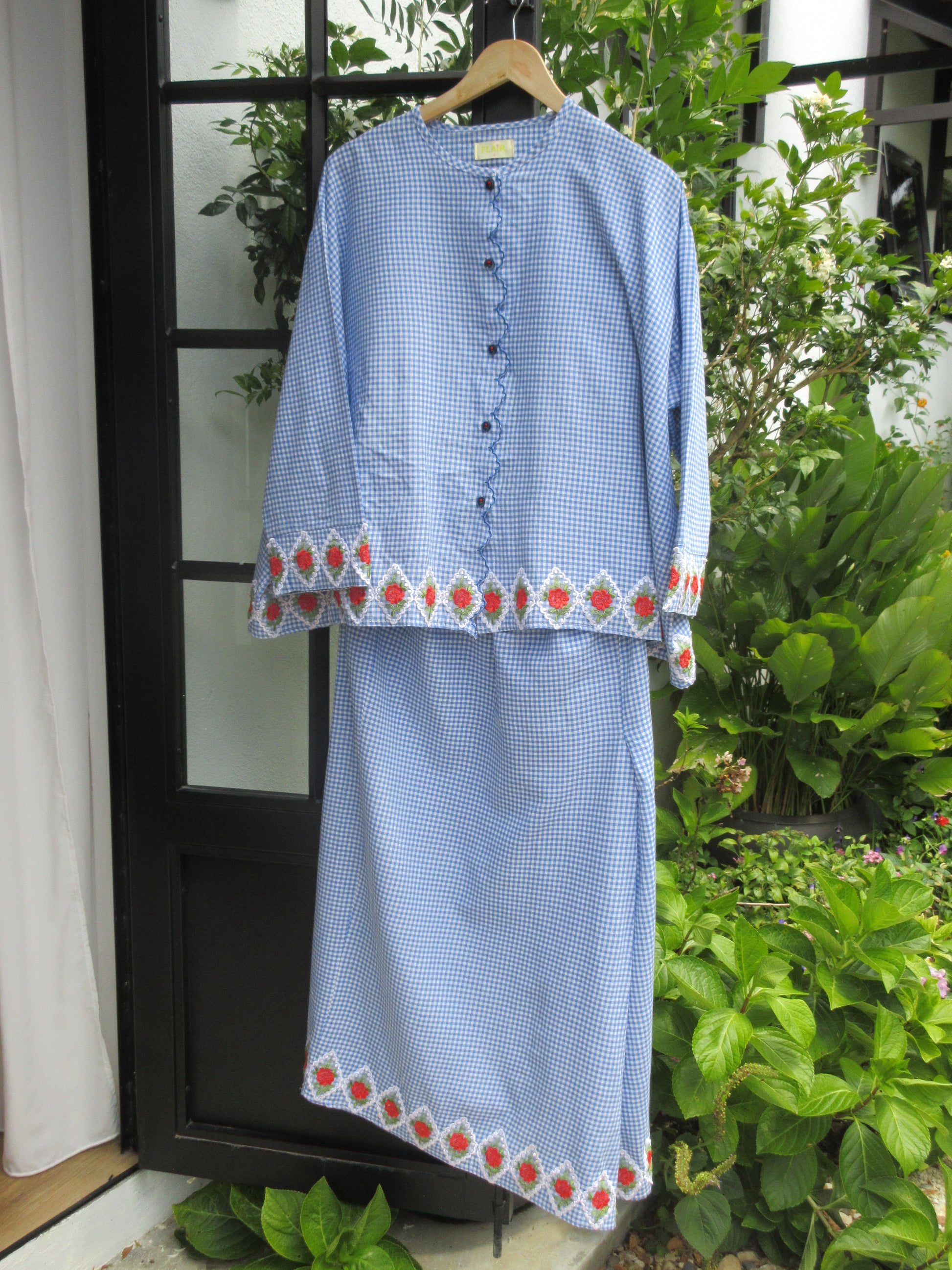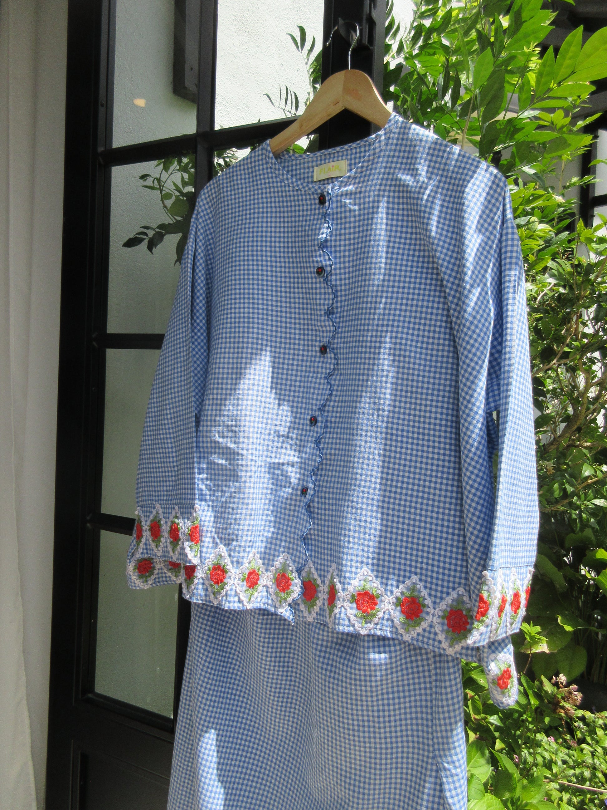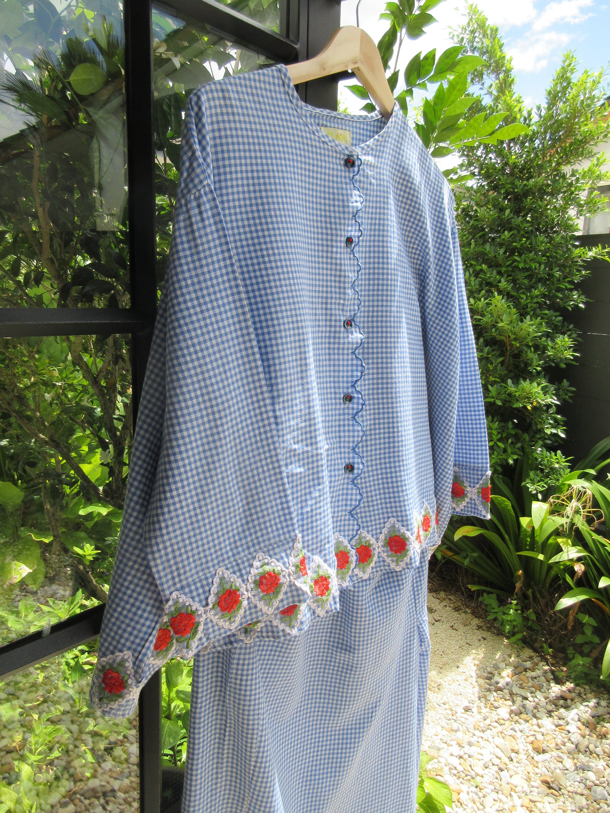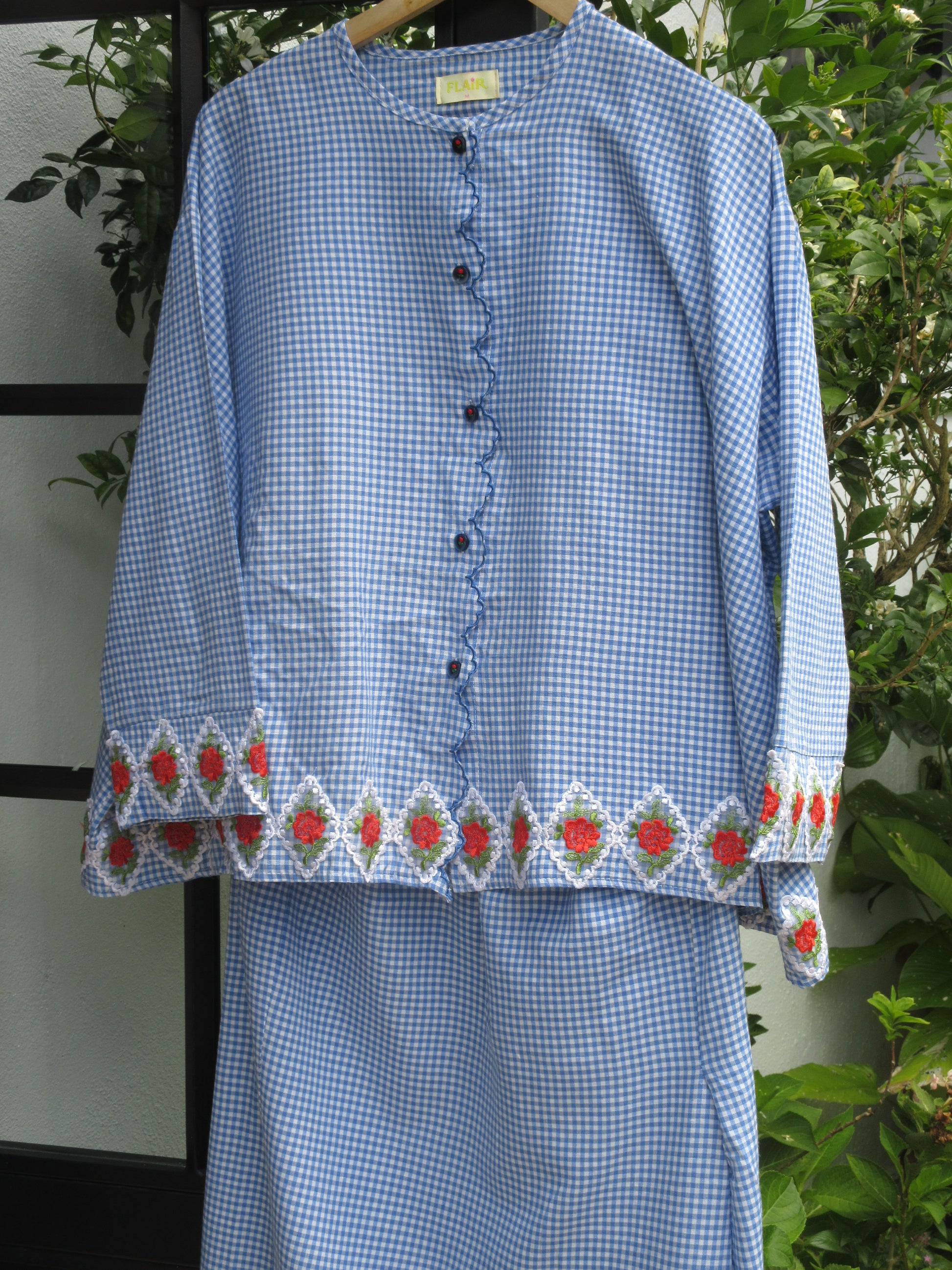 - Sulam detailing along button placket
